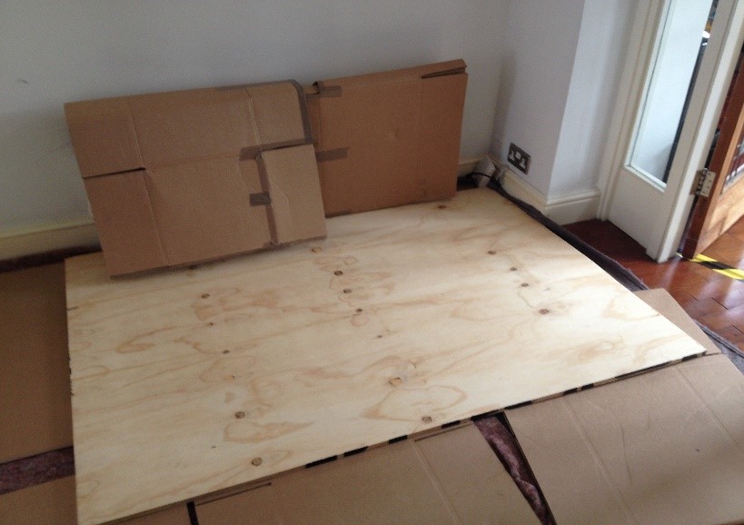 As such we have protected the floor and encapsulated the area where we were going to work to prevent dust spreading outside. The doors leading to the adjacent rooms have been tapped off using masking tape.