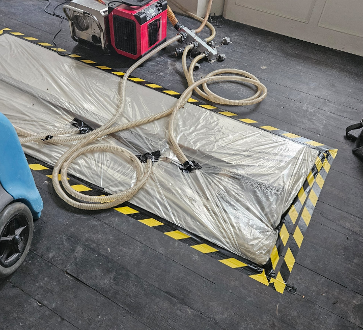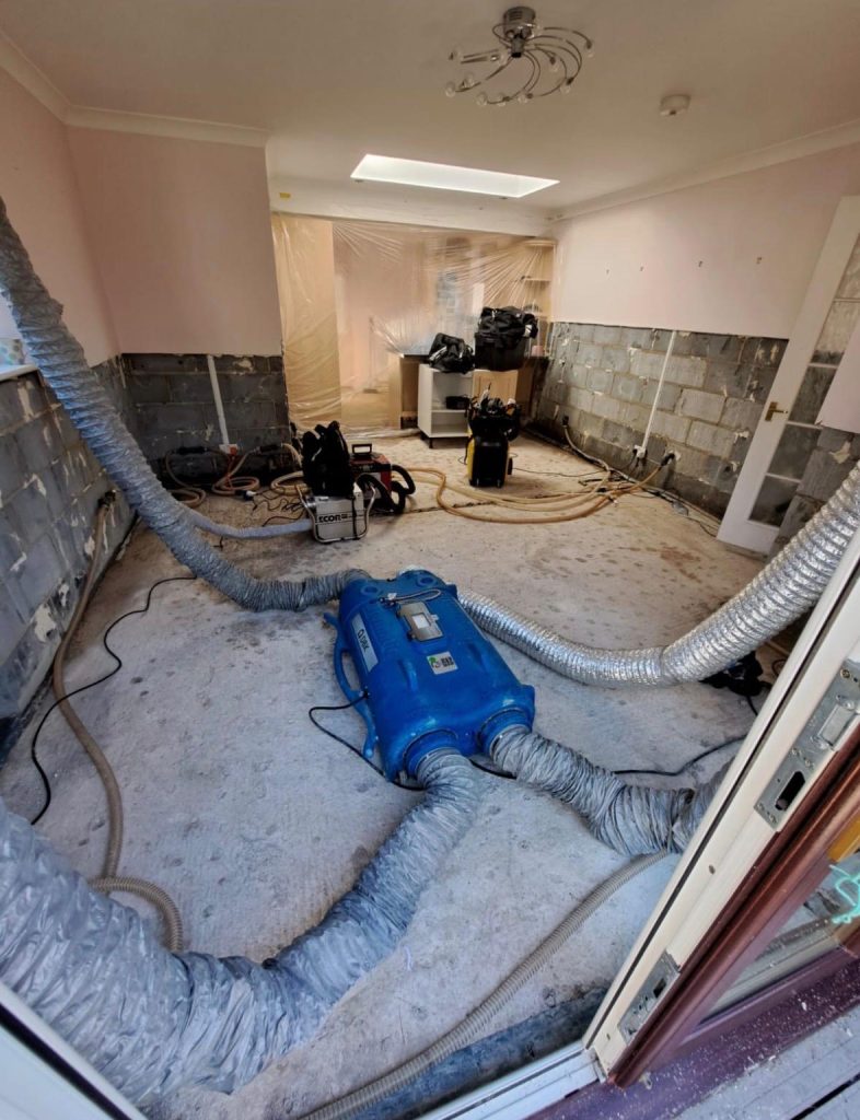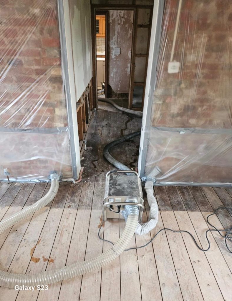 We deploy industrial extraction equipment to remove standing water rapidly — far beyond what any domestic equipment can achieve. The faster the extraction, the less moisture absorbs into the building fabric, and the lower the overall cost of restoration.